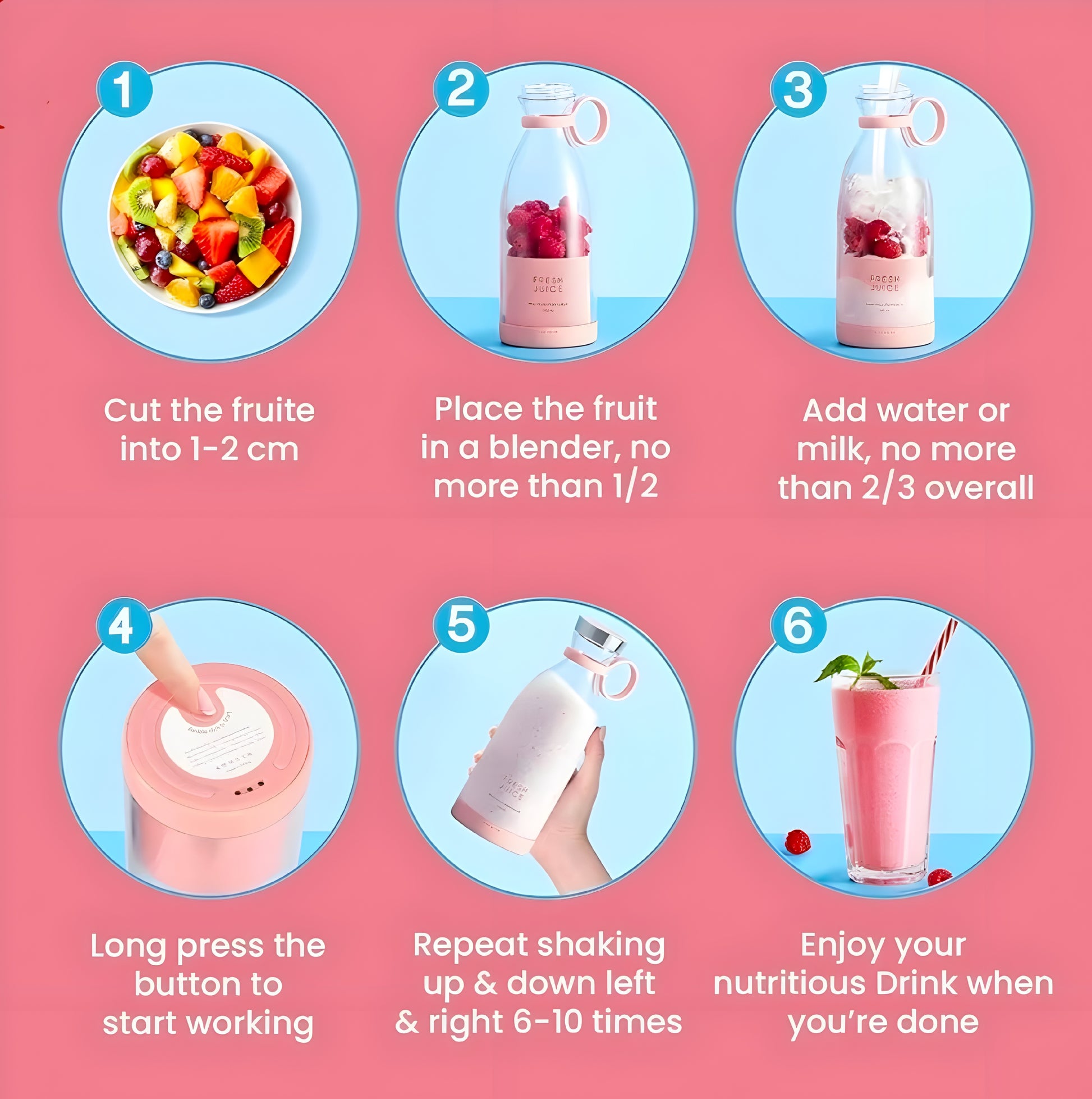 No bulky machines. No wires. Just fresh juice anytime, anywhere.